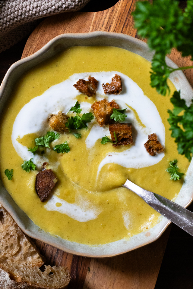 Ursprünglich stammt das Rezept für die gelbe Linsen-Kokos-Suppe übrigens von Mia vom Kochkarussell, ich habe es aber minimal umgeändert. Auf ihrem Blog findest du auch viele leckere Alltagsgerichte, schau doch mal bei ihr vorbei.