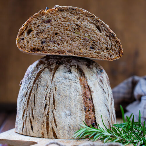 Mediterranes Sauerteigbrot - mit Oliven, getrockneten Tomaten und Rosmarin